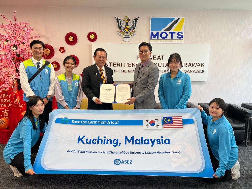 PETRA JAYA: Delegasi enam ahli daripada pertubuhan sukarelawan antarabangsa berpangkalan di Korea Selatan, ASEZ, telah mengadakan kunjungan hormat ke atas Menteri Pengangkutan, Dato Sri Lee Kim Shin, di pejabat beliau di Bangunan Baitulmakmur, di sini hari ini.