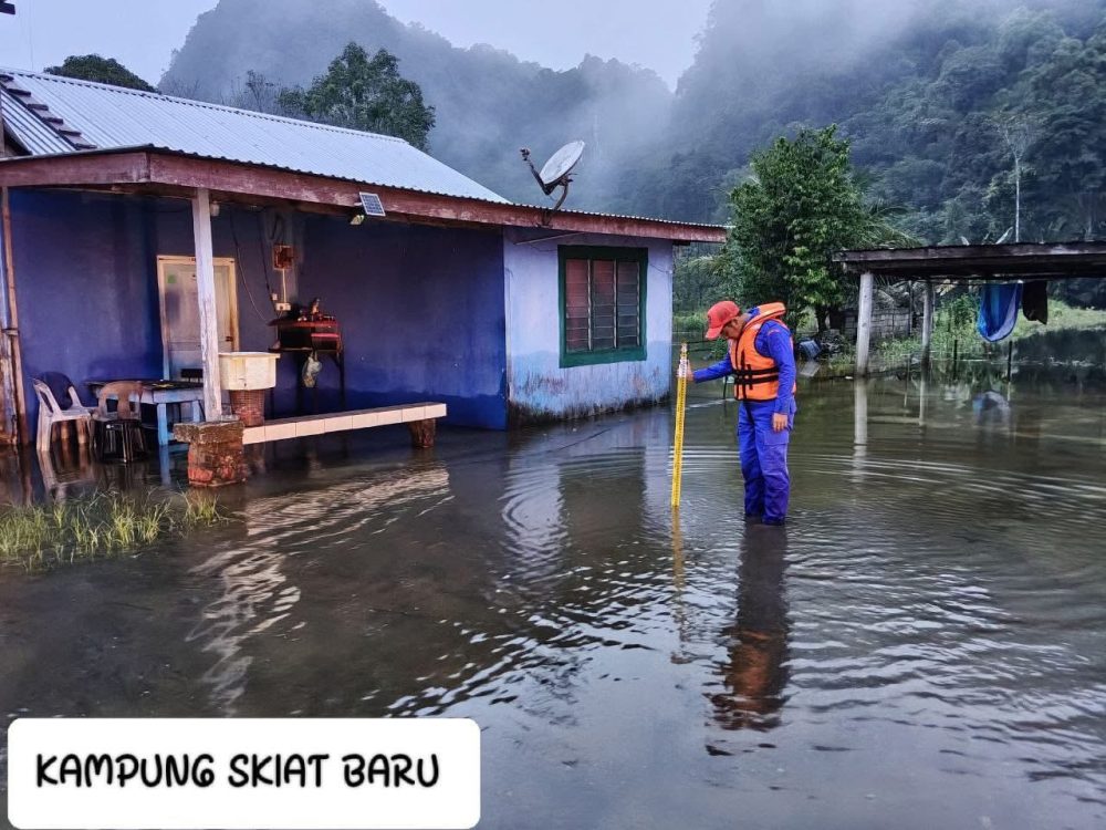 APM Bau menjalankan pemantauan di Kampung Keranji dan Kampung Skiat Baru susulan hujan berterusan semalam, dengan beberapa rumah dilaporkan terjejas namun keadaan keseluruhan masih terkawal. Foto APM Sarawak