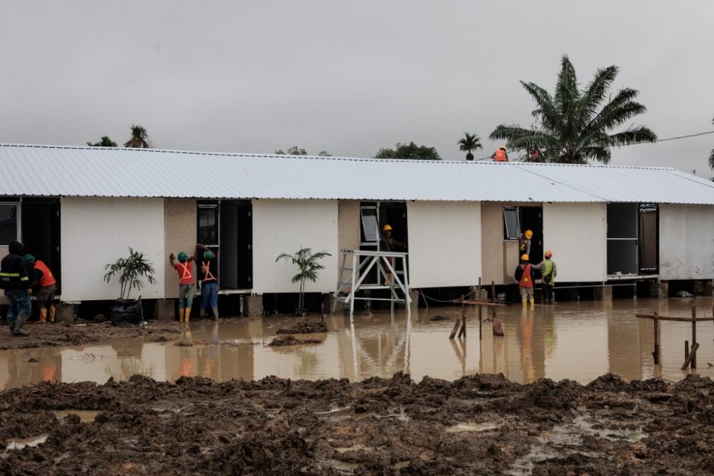UNIT perumahan sementara yang dibina oleh Danantara, sebuah agensi pelaburan milik negara Indonesia, sedang dibina untuk penduduk yang dipindahkan akibat banjir kilat, ketika kerja pembinaan diteruskan di 14 lokasi di Aceh Tamiang, negeri Aceh, pada 8 Januari 2026. Foto AFP
