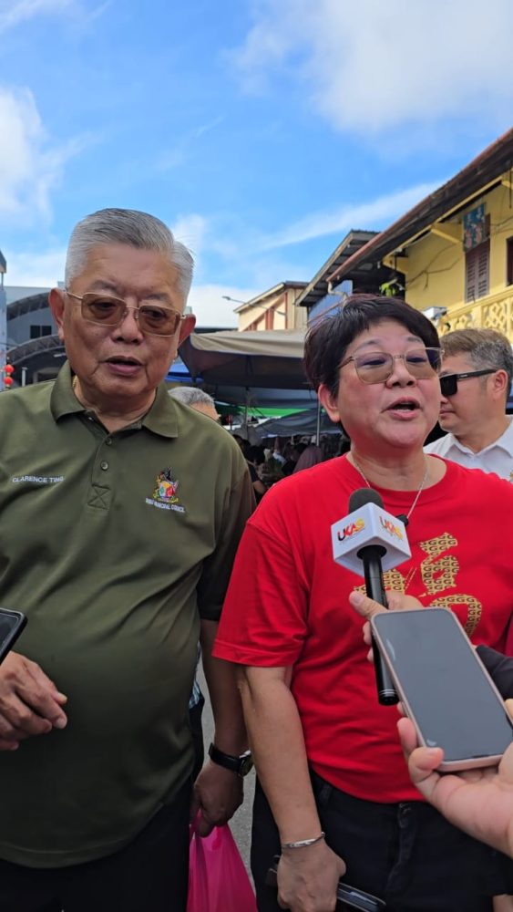 KAUNSELOR Jenny (kanan) ketika ditemui pemberita pada tapak Bazaar Tahun Baharu Cina 2026 di Jalan Lembangan, hari ini. Turut kelihatan ialah Ting (kiri).