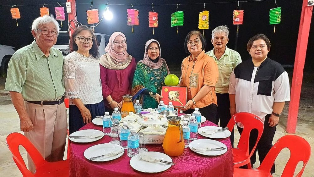 TERIMA KASIH… Datuk Rosey Yunus menerima cenderahati berupakan Kuih Bulan dan lima daripada Kapitan Kuan.
