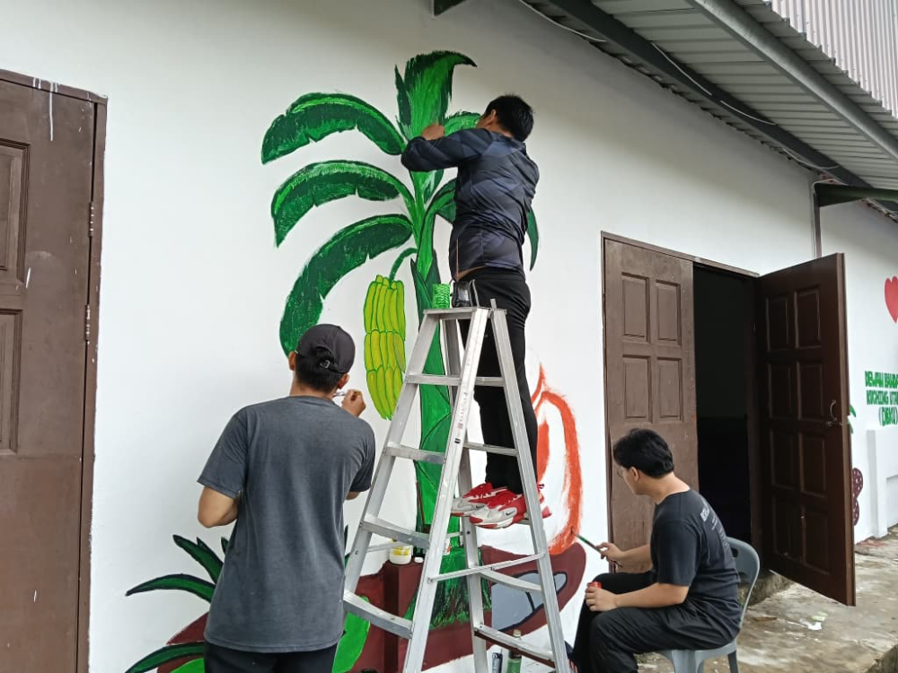 Projek yang bermula 9.00 pagi itu mengambil masa kira-kira lapan jam, menjadikan dinding yang dahulunya usang berubah menjadi pemandangan ceria dan menarik perhatian penduduk.