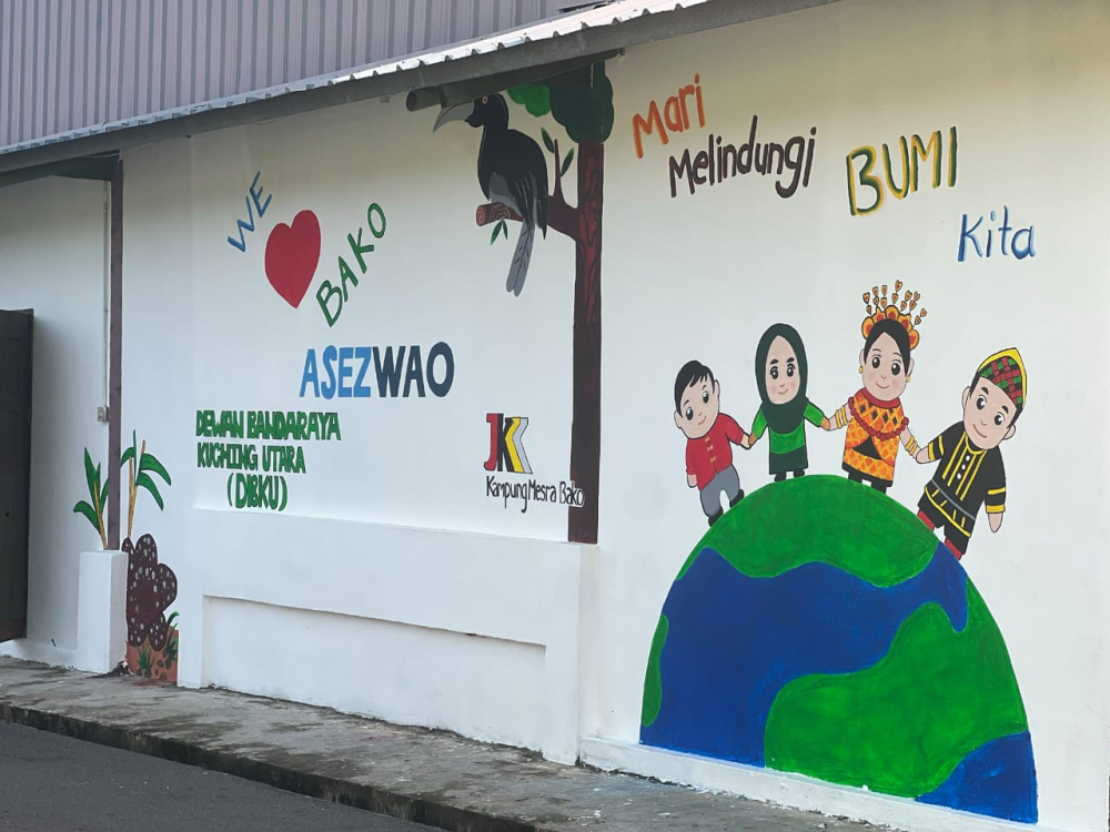 KUCHING: Suasana Kampung Mesra Bako menjadi lebih ceria apabila kumpulan sukarelawan antarabangsa ASEZ WAO melukis mural di Dewan Komuniti Taman Mesra Bako, baru-baru ini.