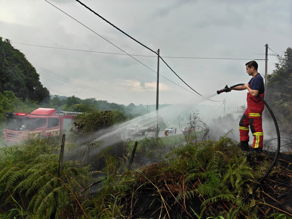 LIMBANG: Pasukan bomba bertindak pantas memadam kebakaran belukar seluas satu ekar di Kampung Bakol, Jalan Medamit, hari ini.