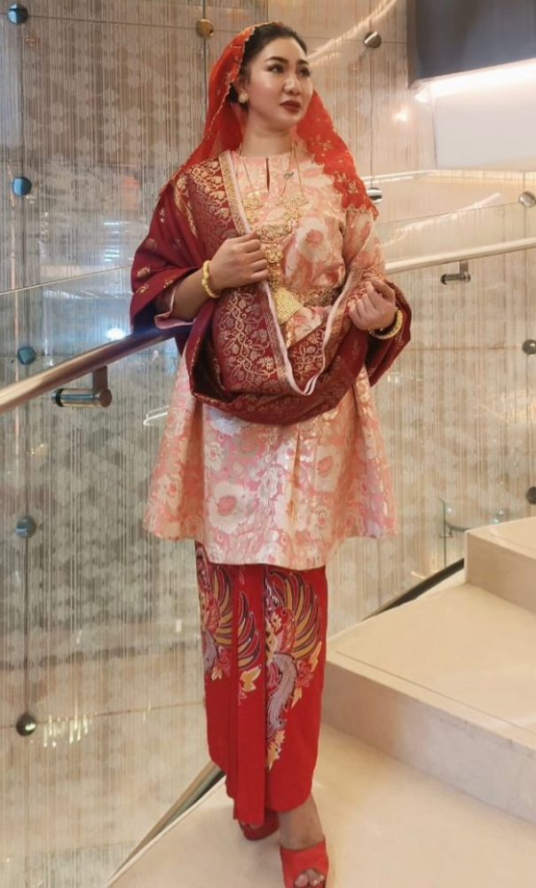 Antara bahan utama yang digunakan termasuk kain kassa rubia serta benang keringkam emas dan perak.