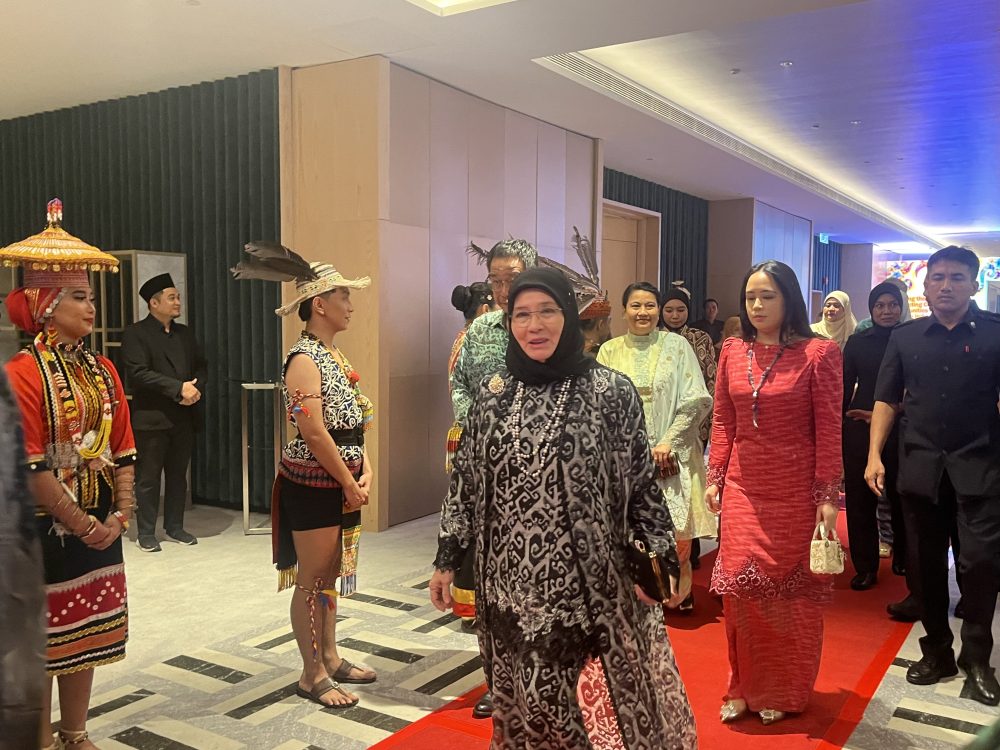 KEBAWAH Duli Paduka Baginda Tengku Ampuan Pahang, Tunku Azizah Aminah Maimunah Iskandariah Almarhum Sultan Iskandar Al-Haj berkenan berangkat masuk ke dewan bersama puteri baginda, Yang Amat Mulia Tengku Puteri Raja Tengku Jihan Azizah Atiyahullah, bagi menghadiri Majlis Perasmian Festival Tekstil Antarabangsa Borneo (BiTF) 2025 di sebuah hotel terkemuka di Kuching sambil disambut Menteri Pelancongan, Industri Kreatif dan Seni Persembahan, Dato Sri Abdul Karim Rahman Hamzah.