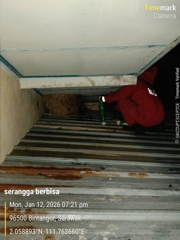 “Tindakan operasi dijalankan menggunakan semburan racun serangga bagi memusnahkan sarang tebuan secara selamat dan terkawal.