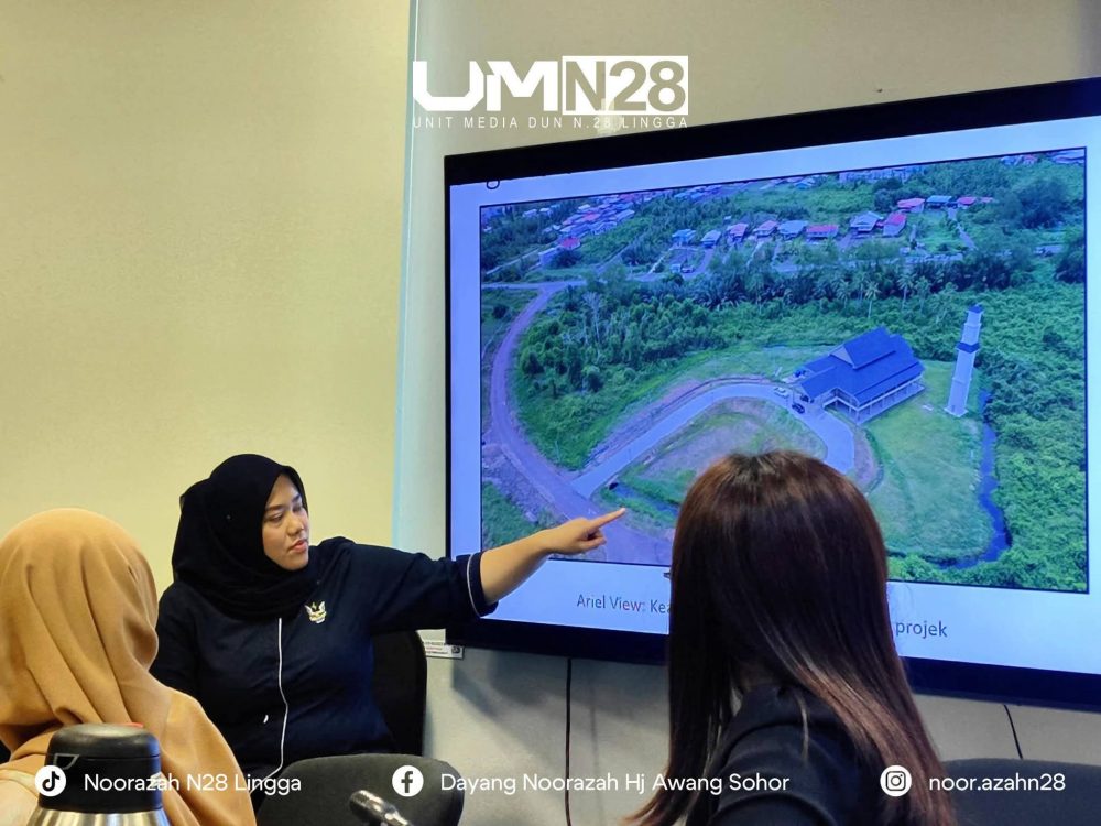 DAYANG Noorazah semasa mengadakan perbincangan cadangan pembinaan kemudahan tempat letak kenderaan di Masjid Maludam di Bilik Mesyuarat JKR Bahagian Betong, semalam. Foto: Pusat Khidmat ADUN Lingga