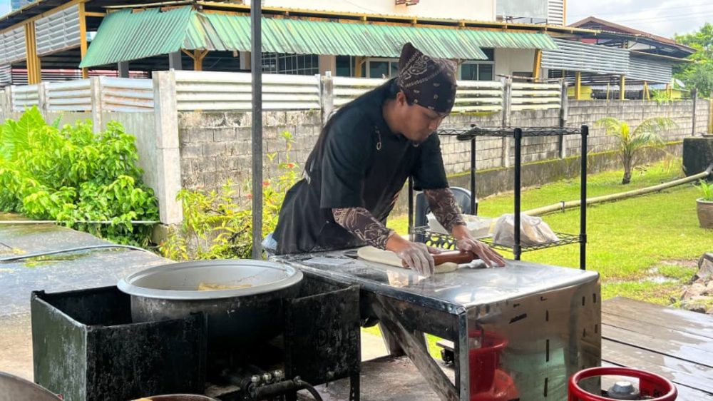 KUCHING: Sebuah warung di tepi jalan Kampung Haji Mataim menjadi tumpuan apabila seorang pemuda bernama Andeeka, dilihat sibuk menyediakan doh cakoi , manakala rakannya menggoreng cakoi di sebelahnya.