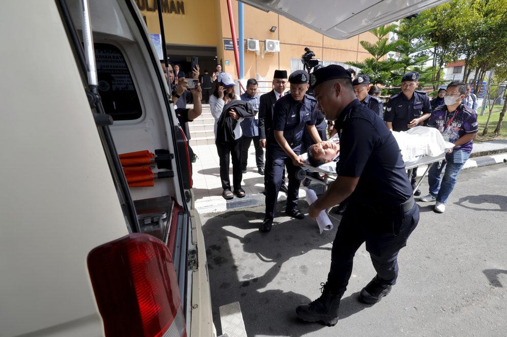 Wakil calon menyerahkan borang pencalonan Dusi yang dibawa ke Hospital Tuaran menggunakan ambulans untuk rawatan lanjut. – Bernama
