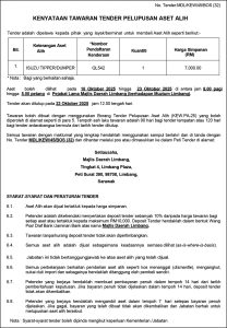 Jumaat, 10 Oktober 2025, Majlis Daerah Limbang, Kenyataan Tawaran Tender IKLAN Jumaat, 10 Oktober 2025, Majlis Daerah Limbang, Kenyataan Tawaran Tender Utusan Sarawak 10 hours ago Read More