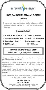 Jumaat, 31 Oktober – 1 November 2025, SEB Notis Gangguan Bekalan Elektrik Sarikei Aik Kim San IKLAN Jumaat, 31 Oktober – 1 November 2025, SEB Notis Gangguan Bekalan Elektrik Sarikei Aik Kim San Utusan Sarawak 10 mins ago Read More