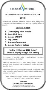 Jumaat, 10-11 Oktober 2025, SEB, Notis Gangguan Bekalan Elektrik Song IKLAN Jumaat, 10-11 Oktober 2025, SEB, Notis Gangguan Bekalan Elektrik Song Utusan Sarawak 8 hours ago Read More