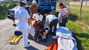OPERASI menyelamat mangsa yang terlibat dengan kemalangan di Jalan Samarahan Road By Pass Stutong Baru. KOTA SAMARAHAN:...