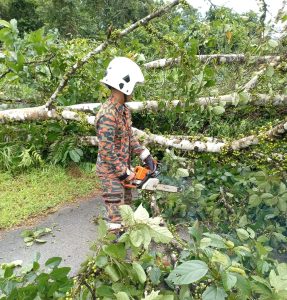 BINTANGOR: Sebatang pokok tumbang dan menghalang laluan di Jalan Sungai Temadak, semalam. Ketua Balai Bomba dan Penyelamat...