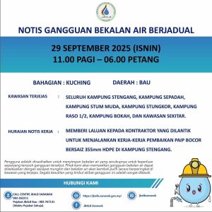 BAU: Penduduk di beberapa kampung sekitar daerah ini dinasihatkan bersiap sedia menghadapi gangguan bekalan air berjadual pada...
