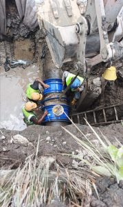 KUCHING: A damaged 600mm water main along Jalan Canna, linked to the Kuching Autonomous Rapid Transit (ART)...