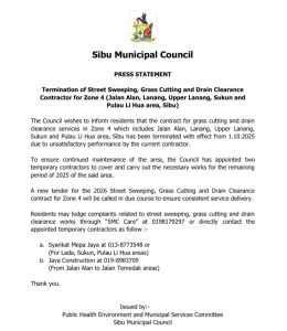SIBU: Majlis Perbandaran Sibu (MPS) menamatkan kontrak syarikat penyelenggaraan bagi Zon 4 yang meliputi kawasan Jalan Alan,...
