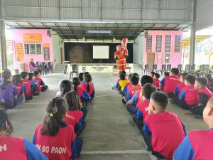 FOKUS….Murid Tadika KEMAS Nanga Lasi fokus dengan pelbagai aktiviti menarik dengan pugak bomba. Foto BBP Bintangor BINTANGOR:...