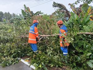 ENGKILILI: Satu kejadian pokok tumbang di Lubok Subong, di sini pagi tadi menyebabkan jambatan menuju ke Klinik...