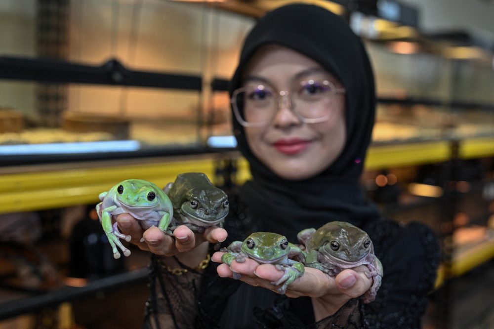 PENGASAS Brotherhood Reptiles, Nur Nina Farisha Woo Abdullah, 29, menunjukkan katak Pokok atau Dumpy Tree Frog ketika ditemui Bernama baru-baru ini. Foto Bernama