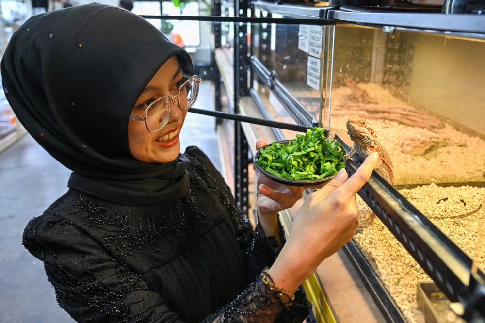 “Daripada hanya berani pegang sedikit demi sedikit akhirnya saya mampu mengendalikan pelbagai haiwan eksotik dengan lebih selesa,” katanya ketika ditemui Bernama di kedainya baru-baru ini.