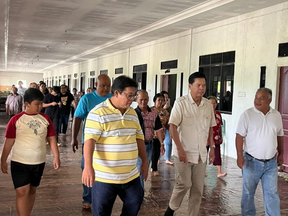 LAWATAN… Datuk Majang Renggi ketika mengadakan kerja bagi meninjau pelaksanaan projek Program Perumahan Rakyat Miskin Sarawak (PPRMS) di Rumah Man Andoh, Batu 21, Jalan Bintulu–Miri, semalam.