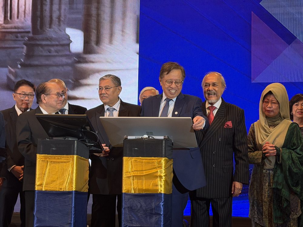 SEMPURNAKAN… Datuk Patinggi Tan Sri Abang Johari Tun Openg menyempurnakan gimik perasmian Hari Integriti DBOS di sebuah hotel terkemuka di Kuching, hari ini.