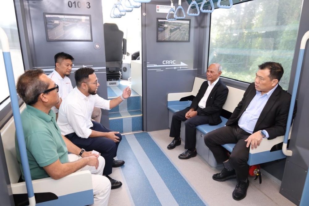 ANGGOTA delegasi Kerajaan Negeri Perak ketika menaiki kenderaan prototaip ART.