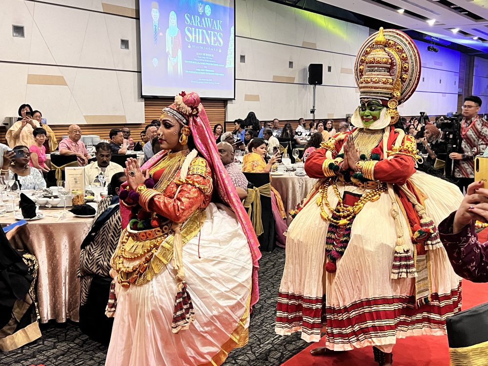 KUCHING: Perayaan Diwali peringkat negeri bertemakan Sarawak Bersinar: Raikan Diwali Gaya Sarawak di Pusat Konvensyen Borneo Kuching (BCCK) semalam meraikan keunikan keharmonian Sarawak apabila masyarakat pelbagai agama dan etnik berhimpun sebagai satu keluarga besar.