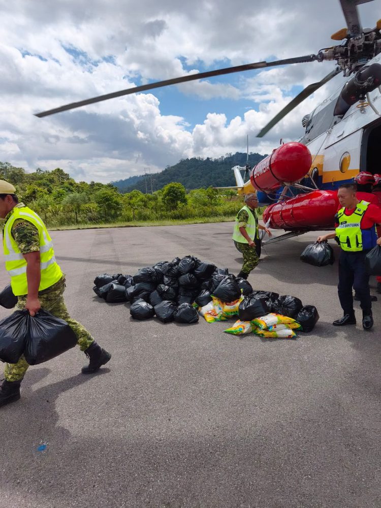 Sebanyak empat penerbangan dilaksanakan dalam tempoh dua hari berjaya menghantar kira-kira 8,700 kilogram bekalan bantuan ke kawasan terlibat.