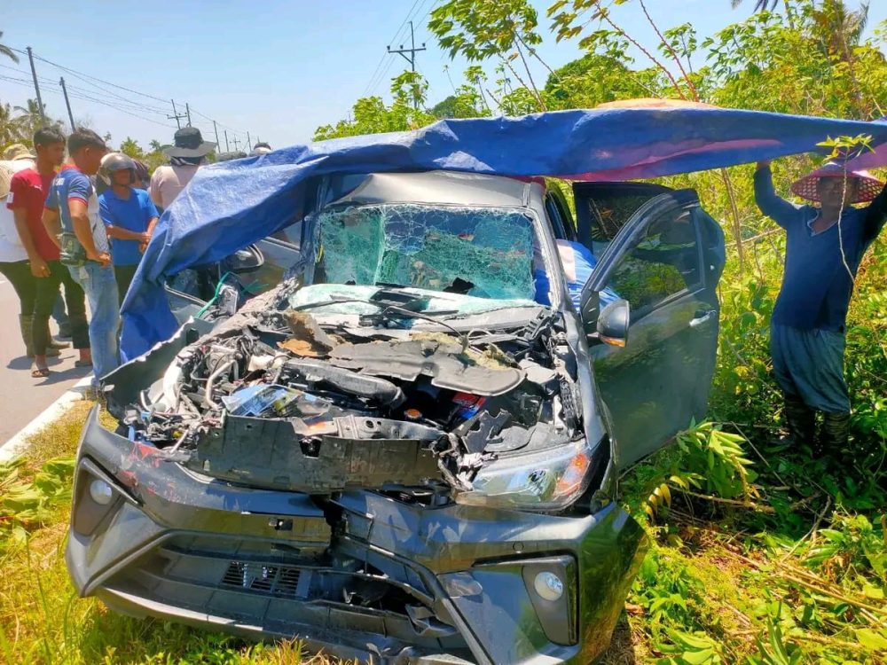 KEADAAN kereta yang remuk di bahagian hadapan selepas terlibat dalam kemalangan di Jalan Bruan, Matu, yang mengorbankan dua kanak-kanak manakala seorang mangsa dewasa cedera dalam kejadian, hari ini. Foto APM Matu
