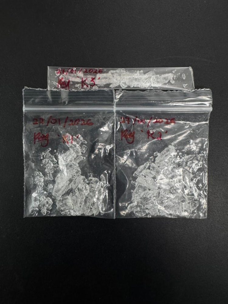 “Pemeriksaan badan telah menemui dua paket plastik lut sinar berisi hablur disyaki dadah jenis syabu serta satu keratan tiub straw yang mengandungi hablur jernih disyaki dadah jenis syabu dan dirampas untuk dijadikan barang kes. Anggaran berat kasar rampasan ialah 2.5 gram,” katanya dalam satu kenyataan hari ini.