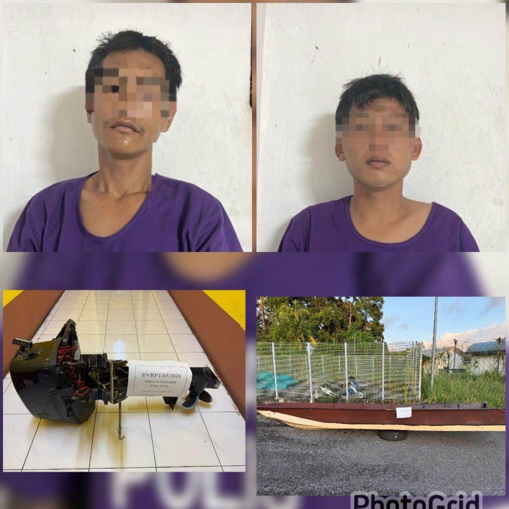 “Kedua-dua suspek ditahan di kawasan Jalan Mahkamah kerana disyaki terlibat dengan kes kecurian bot fiber dan enjin Tohatsu 9.8HP yang dilaporkan menerusi laporan polis Bintangor Rpt: 0065/2026.