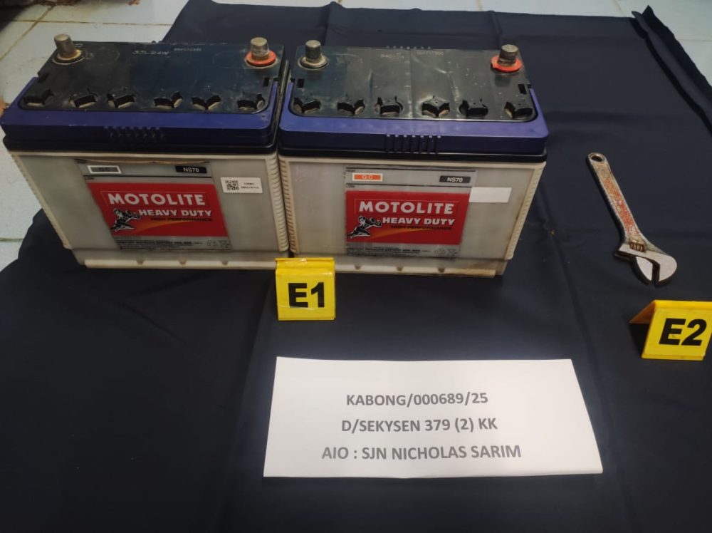 “Bertindak atas laporan, pasukan kami berjaya menahan kedua-dua suspek dan merampas dua unit bateri jenama Motolite Heavy Duty serta sebatang spanar boleh laras jenama Baolian yang dipercayai digunakan dalam kejadian,” katanya dalam kenyataan hari ini.