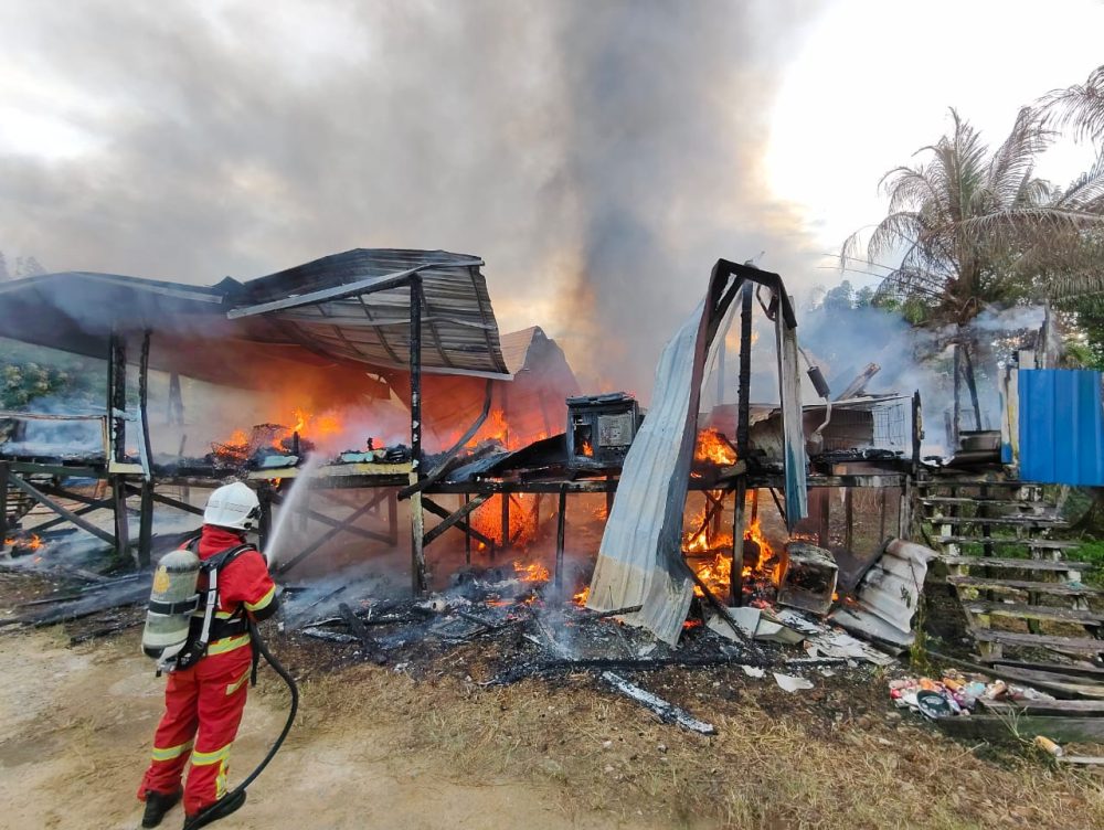 “Setibanya di lokasi, Komander Operasi melaporkan kebakaran melibatkan dua rumah jenis struktur tidak kekal yang masing-masing terbakar 100 peratus.