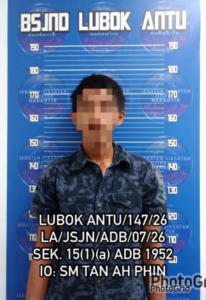 Menurut kenyataan media IPD Lubok Antu, tangkapan tersebut dilakukan oleh sepasukan anggota dari Bahagian Siasatan Jenayah Narkotik (BSJN) IPD Lubok Antu hasil risikan dan pemantauan yang dijalankan ke atas aktiviti disyaki berkaitan dadah.