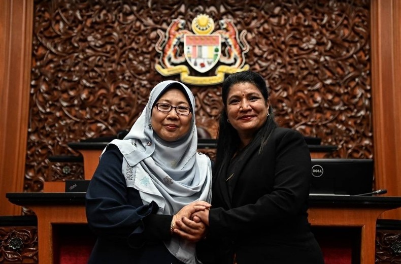 Mereka ialah Timbalan Menteri Perdagangan Dalam Negeri dan Kos Sara Hidup Datuk Dr Fuziah Salleh dan Timbalan Menteri Perpaduan Negara K. Saraswathy.