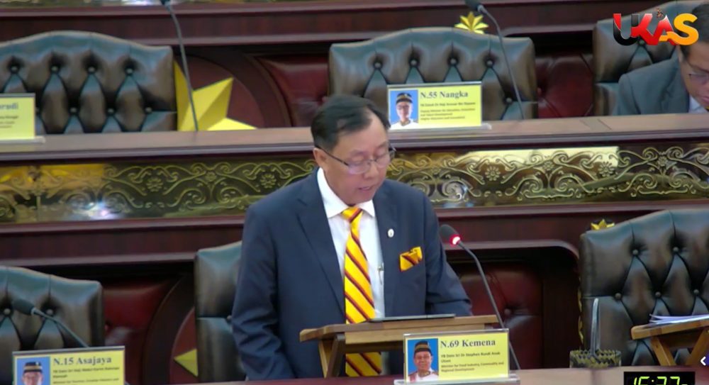 Dato Sri Dr Stephen Rundi Utom menyampaikan ucapan penggulungan kementerian pada Persidangan Dewan Undangan Negeri (DUN) ke-19 hari ini. Foto UKAS