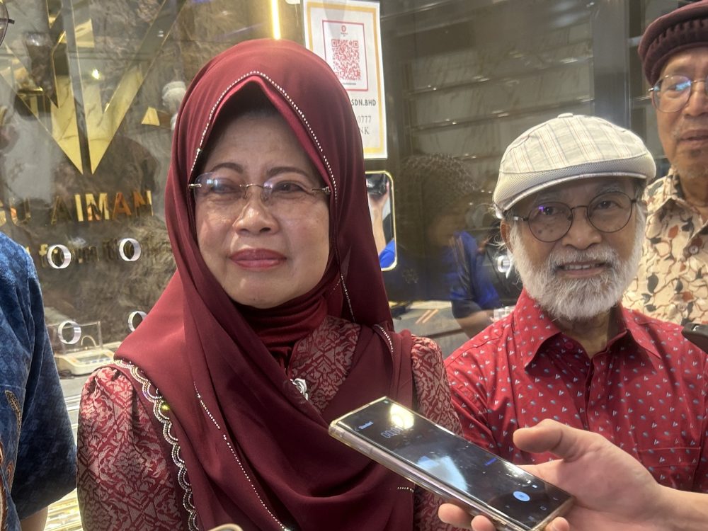 DITEMUI MEDIA… Dato Sri Fatimah Abdullah ditemui media ketika merasmikan Pembukaan Chegu Aiman Gadget dan Gold Cawangan Kota Samarahan, hari ini. Foto Norman B