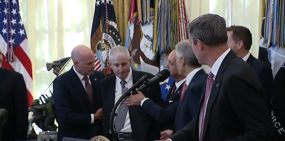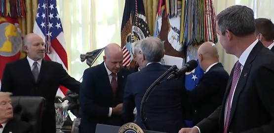 Gordon Findlay, wakil syarikat Novo Nordisk, rebah ketika Ketua Pegawai Eksekutif Eli Lilly, David Ricks, sedang berucap pada majlis di Pejabat Oval yang menyaksikan Trump dan syarikat farmaseutikal mengumumkan perjanjian untuk memperluas perlindungan dan menurunkan harga rawatan obesiti Zepbound dan Wegovy.