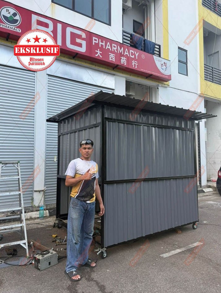 “Saya bermula dari bengkel kecil sendiri. Dulu kerja kimpal biasa, tapi selepas PKP saya nampak peluang. Ramai orang nak berniaga, tapi susah cari stall yang sesuai dengan harga mampu milik,” katanya ketika ditemui Utusan Sarawak, di tapak kerja di Petra Jaya, dengan peluh menitik di dahi meskipun senyum tidak pernah lekang di bibir.