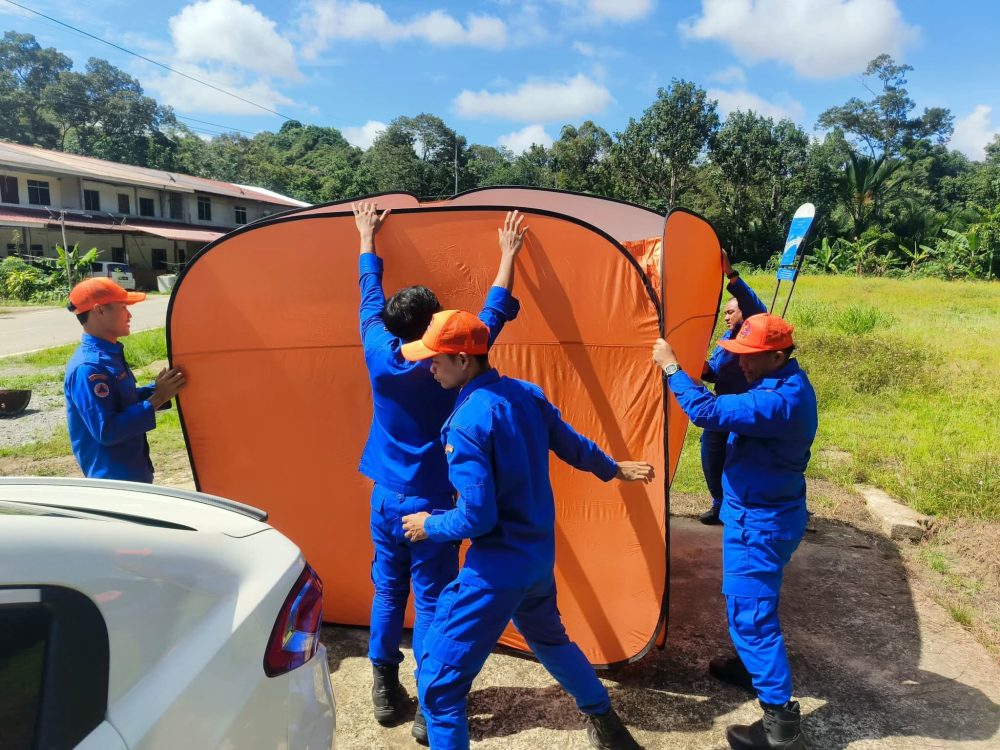 LATIHAN….Anggota Sukarela Pertahanan Awam (MyAspa) O Sarikei dan Meradong bergabung menjalankan latihan cara pemasangan C-Tent. Foto APM Sarikei