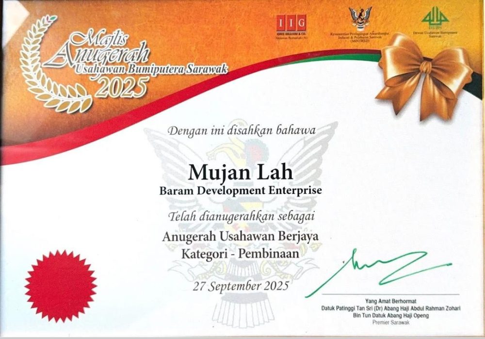 SIBU: Ketabahan dan kerja keras selama lebih tiga dekad akhirnya membuahkan kejayaan bagi usahawan wanita, Mujan Lah, apabila beliau dinobatkan sebagai penerima Anugerah Usahawan Bumiputera Sarawak (AUBS) 2025 baru-baru ini.