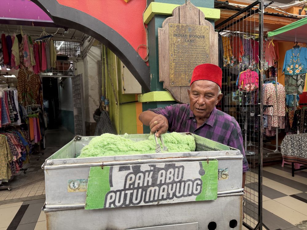 KUCHING: Di celah kesibukan Lebuh India di sini, aroma putu mayung yang dikukus segar sering membuatkan orang ramai berhenti melangkah, di bawah laluan berbumbung itu, sebuah motosikal yang diparkir kemas bertukar fungsi menjadi gerai kecil.