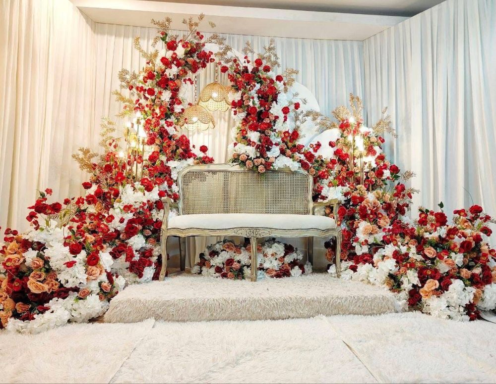 DEKORASI pelamin eksklusif daripada pasukan Qaseh Sha, lengkap dengan sentuhan budaya tempatan.