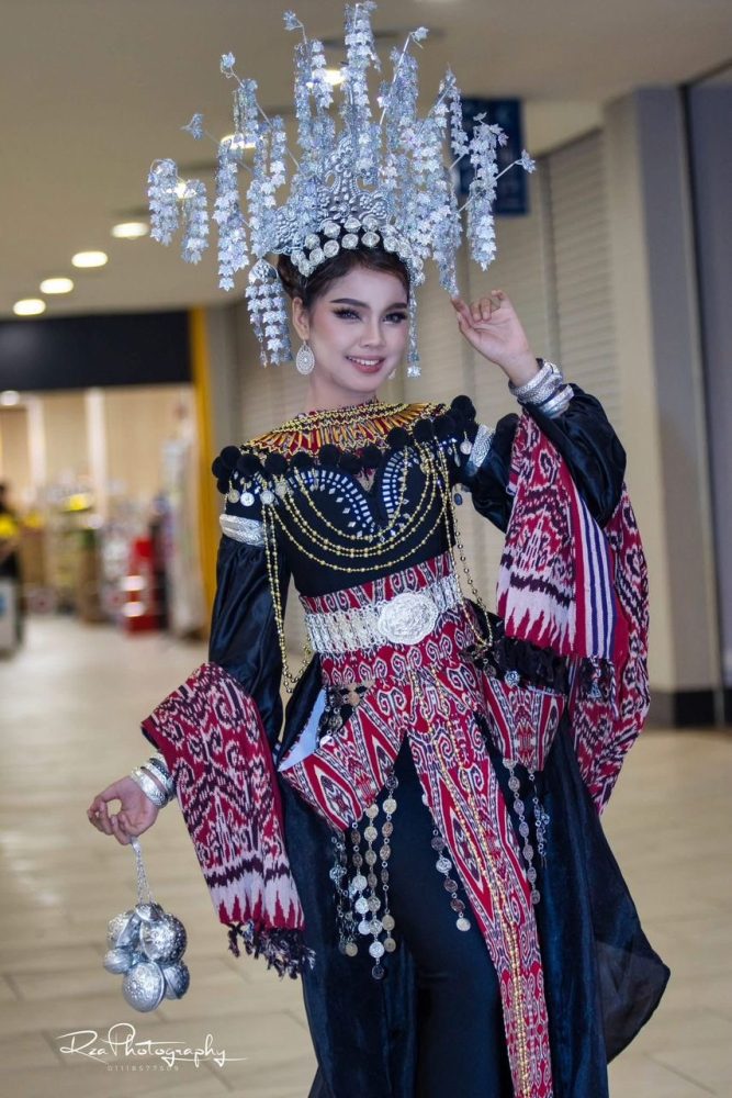 “Identiti rekaan turut diperkukuhkan menerusi gabungan elemen moden dengan budaya tempatan termasuk penggunaan fabrik songket tenunan, elemen pua kumbu, warna tradisional serta aksesori etnik seperti gandik, sanggul lintang dan dokoh rantai dalam sentuhan moden.