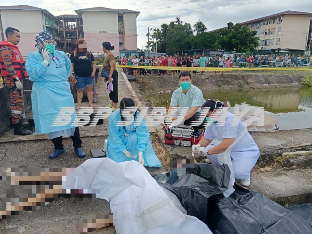 LEMAS… Tiga kanak-kanak lemas selepas dipercayai terjatuh ke dalam kolam kumbahan berhampiran flat Sibu Jaya, semalam. Foto BBP Sibu Jaya