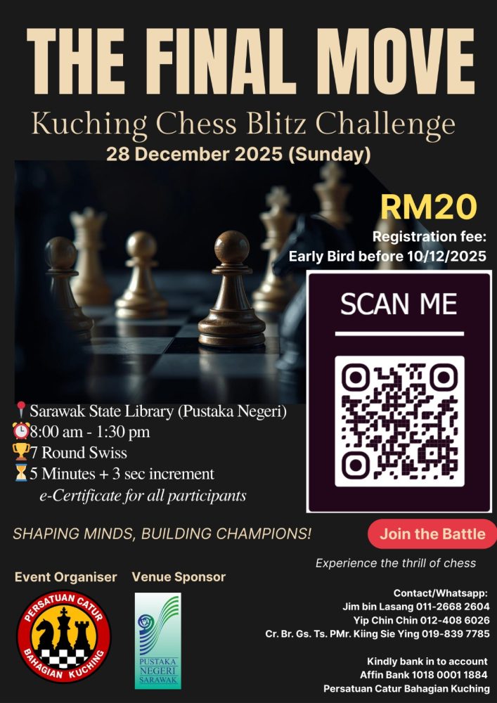 • Final Move 2025: Cabaran Catur Blitz Kuching 28 Disember ini
