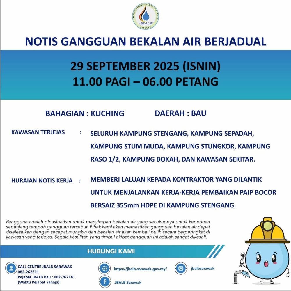 Untuk sebarang pertanyaan, orang ramai boleh menghubungi Pusat Panggilan JBALB Sarawak di talian 082-262211 atau Pejabat JBALB Bau di talian 082-767141 (waktu pejabat sahaja) atau melayari laman sesawang rasmi di https://jbalb.sarawak.gov.my/.